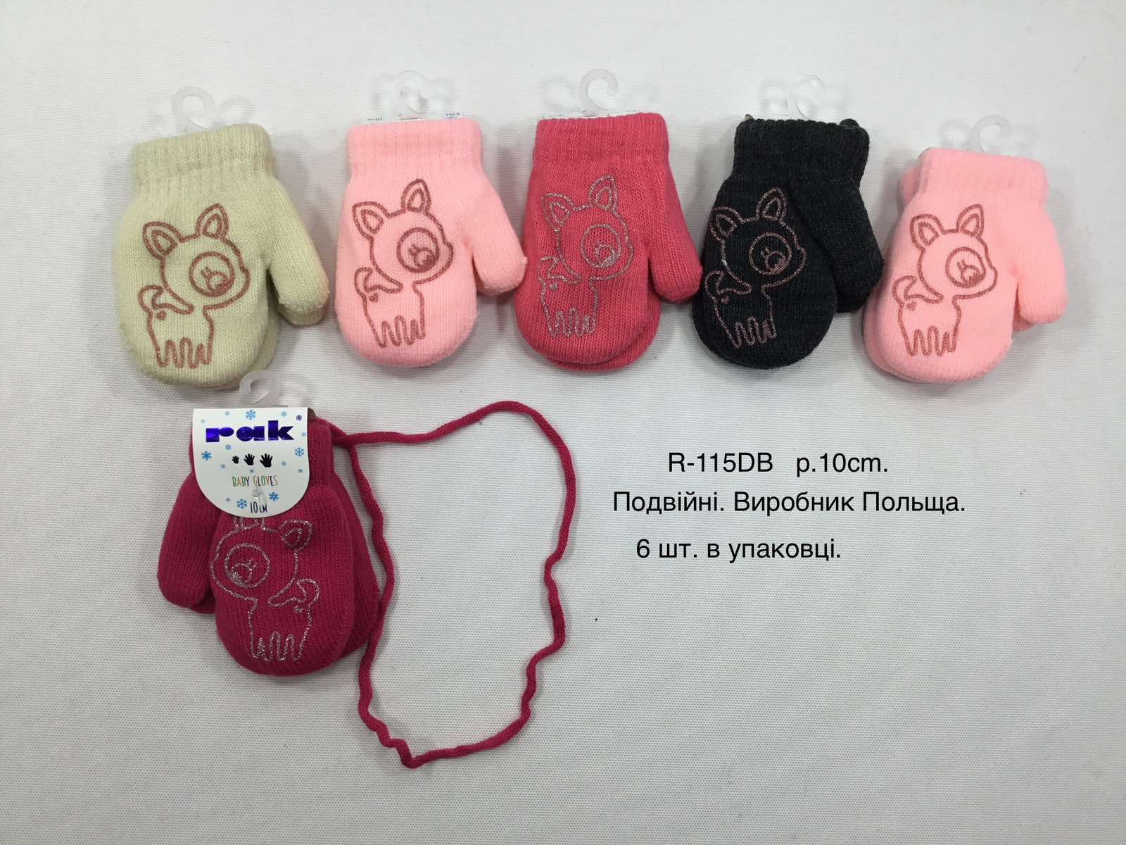 Купити оптом утеплені рукавиці на дівчаток, Р. 10 см. (0-6 місяців), R115db (Польща)