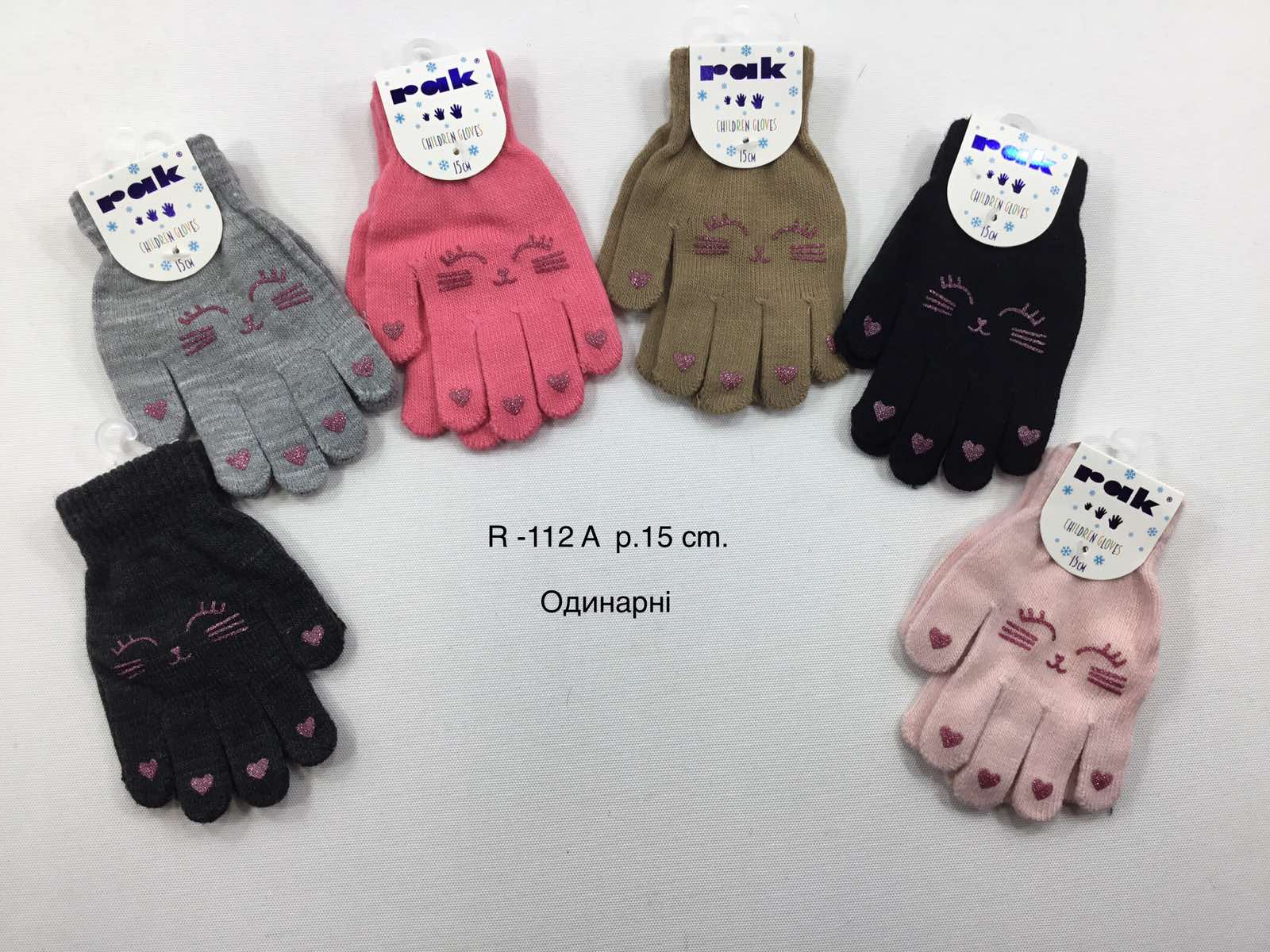 Купити оптом одинарні рукавички на дівчаток, Р.15 см. (7-8 років), R184 (Польща)