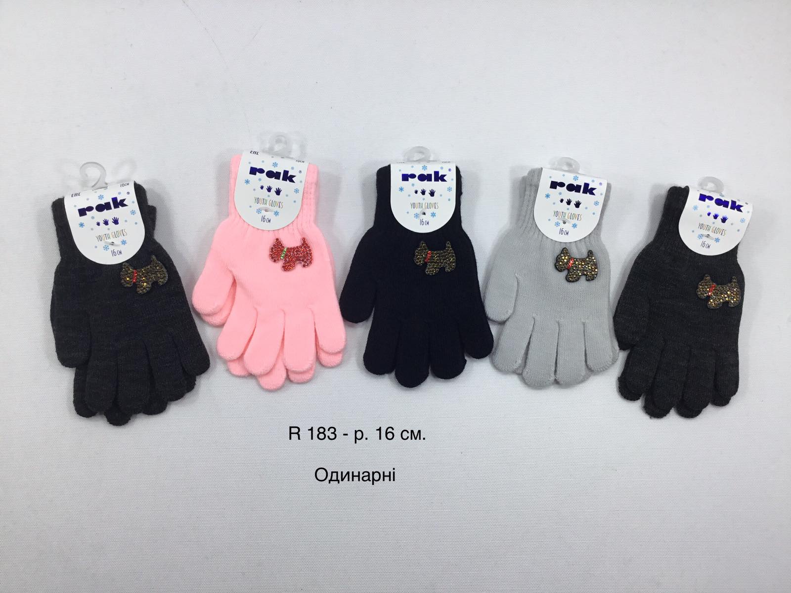 Перчатки одинарні на дівчинку, Р.16 см. (9-10 років), R183 (Польща)