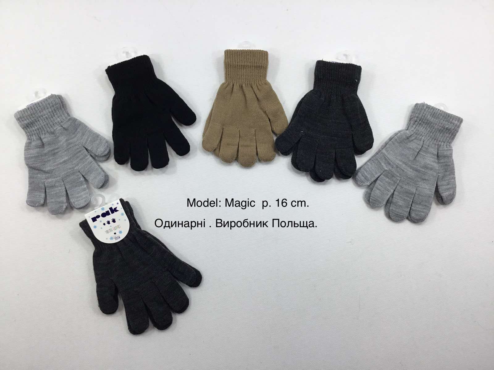Перчатки одинарні на дівчинку, Р.16 см. (9-10 років), Magic (Польща)